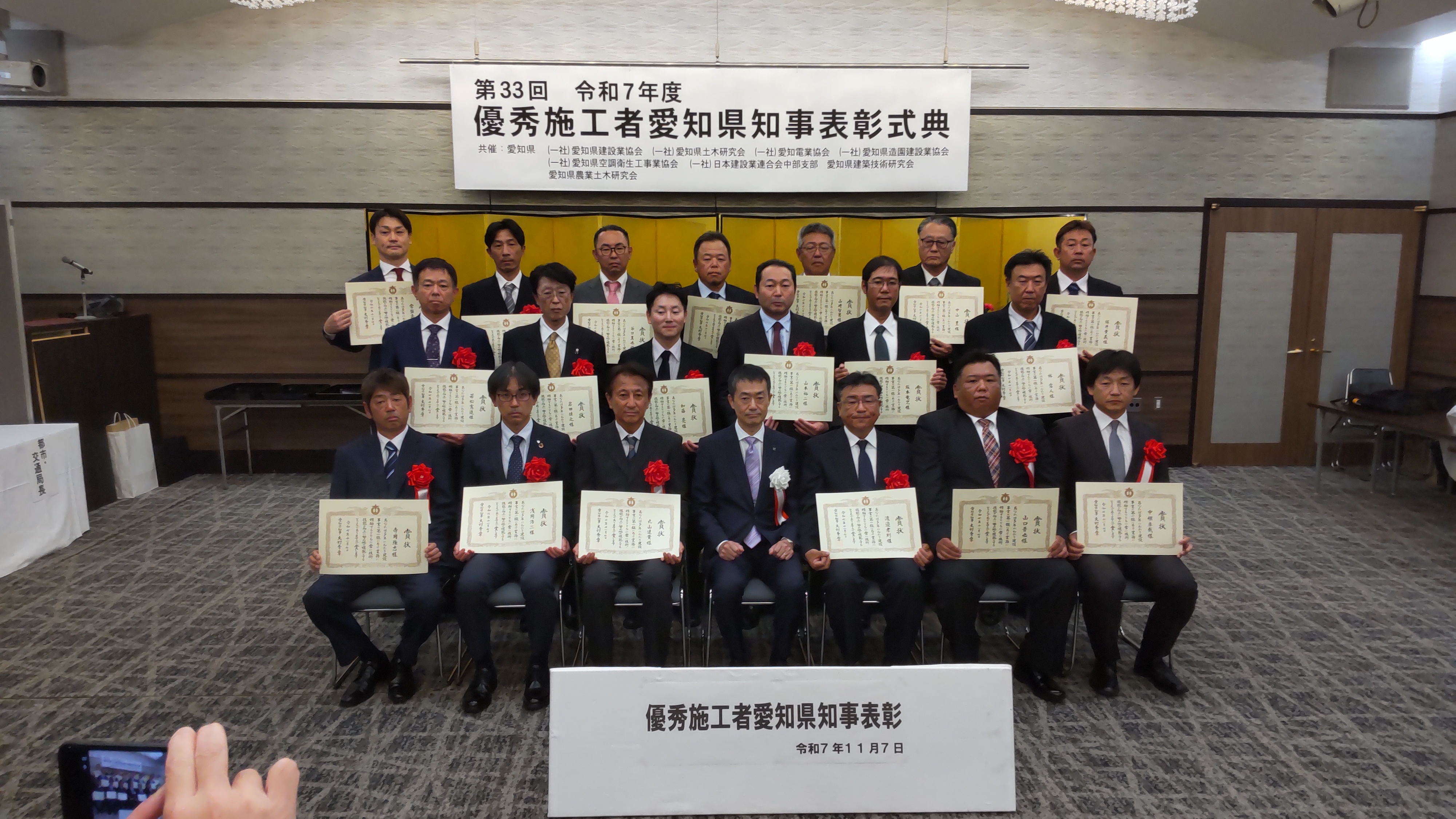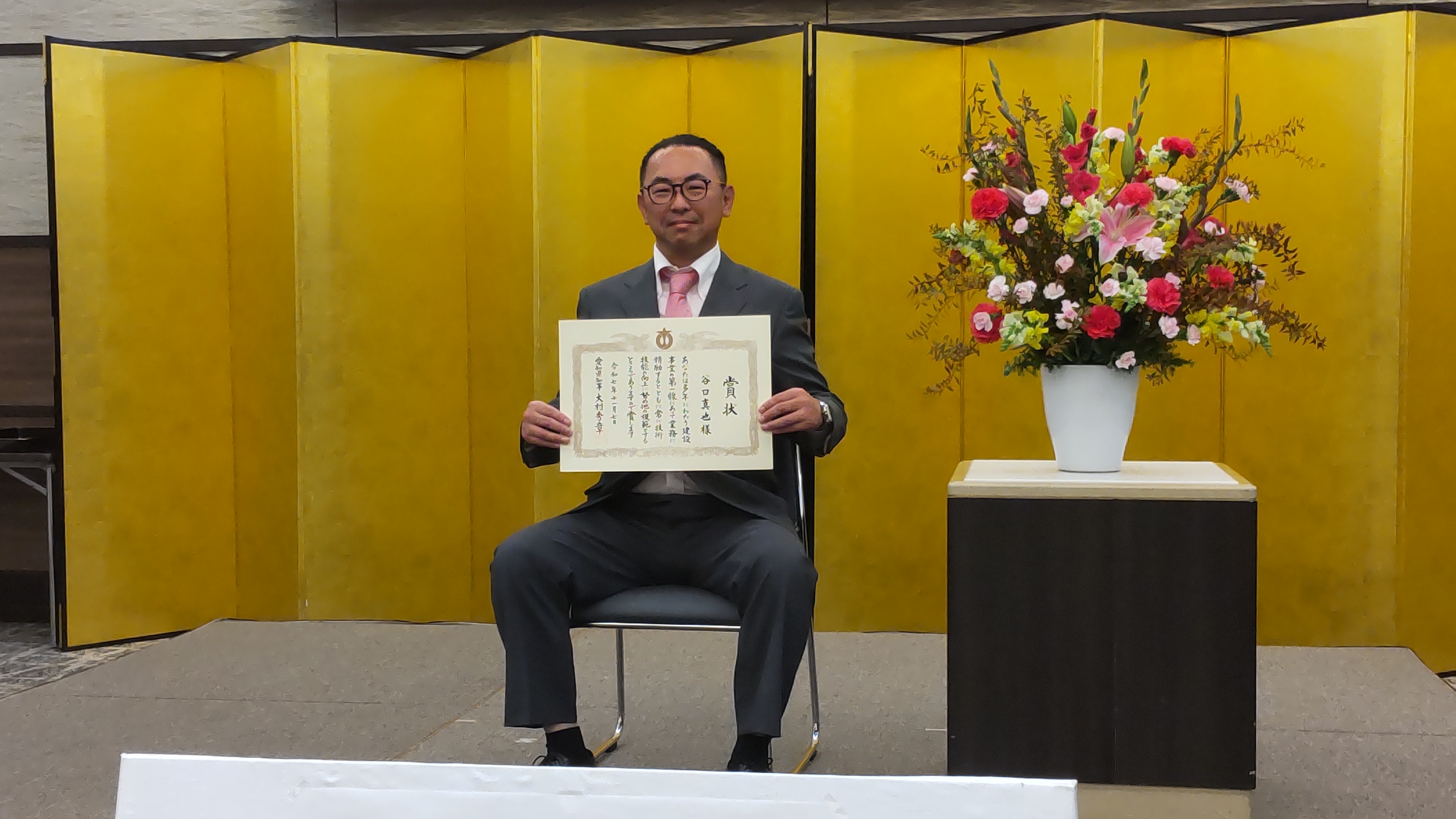 〇11月7日(金) アイリス愛知(名古屋市)において優秀施工者愛知県知事表彰式典が開催され、本研究会からは水野建設 株式会社の谷口 真也様が受賞されました。