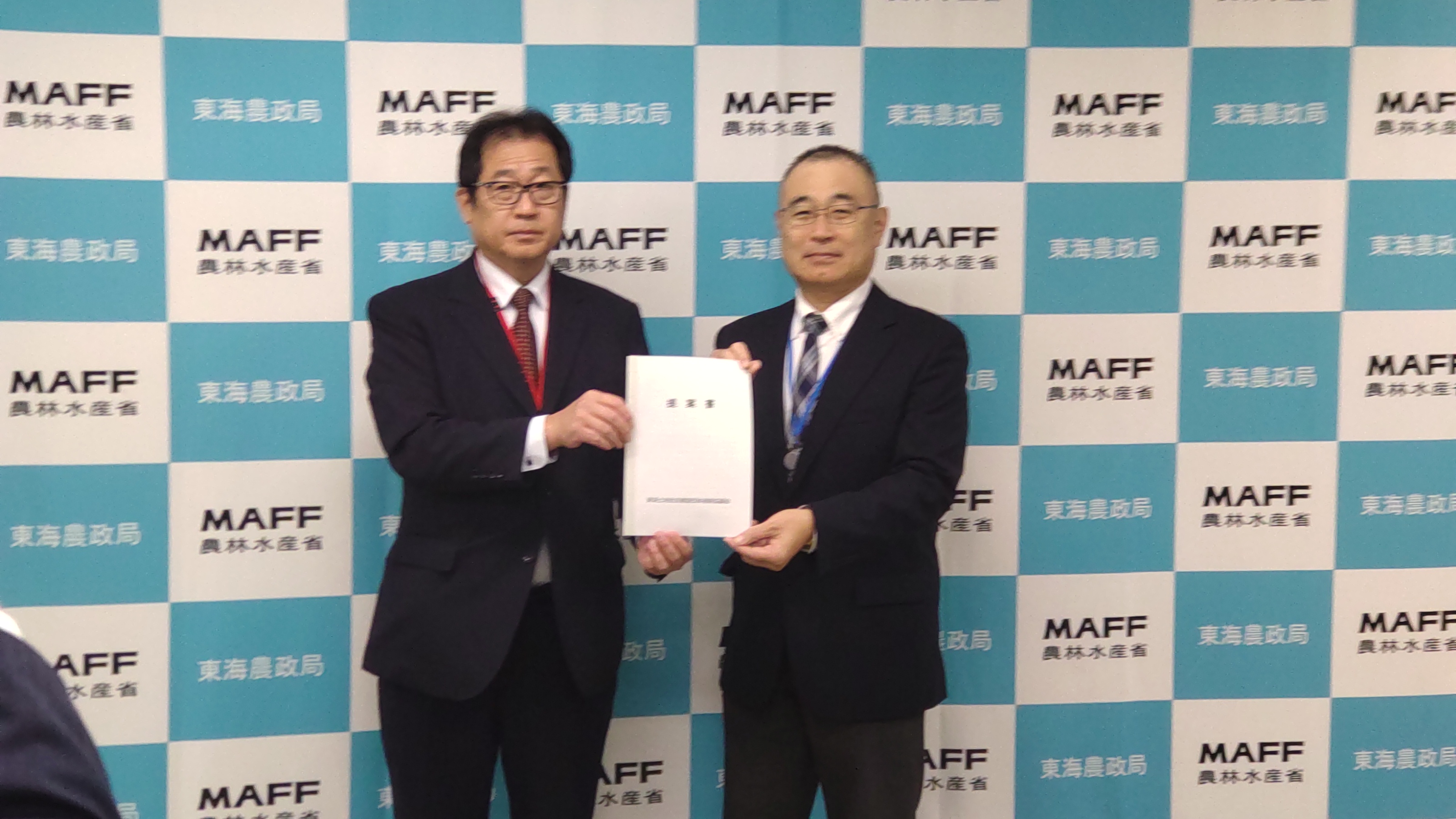 〇11月14日(金) 愛知・岐阜・三重の建設団体で組織する東海土地改良建設団体連絡協議会の田村会長(三重県農業土木振興会会長)はじめ役員による東海農政局への要請活動が行われました。