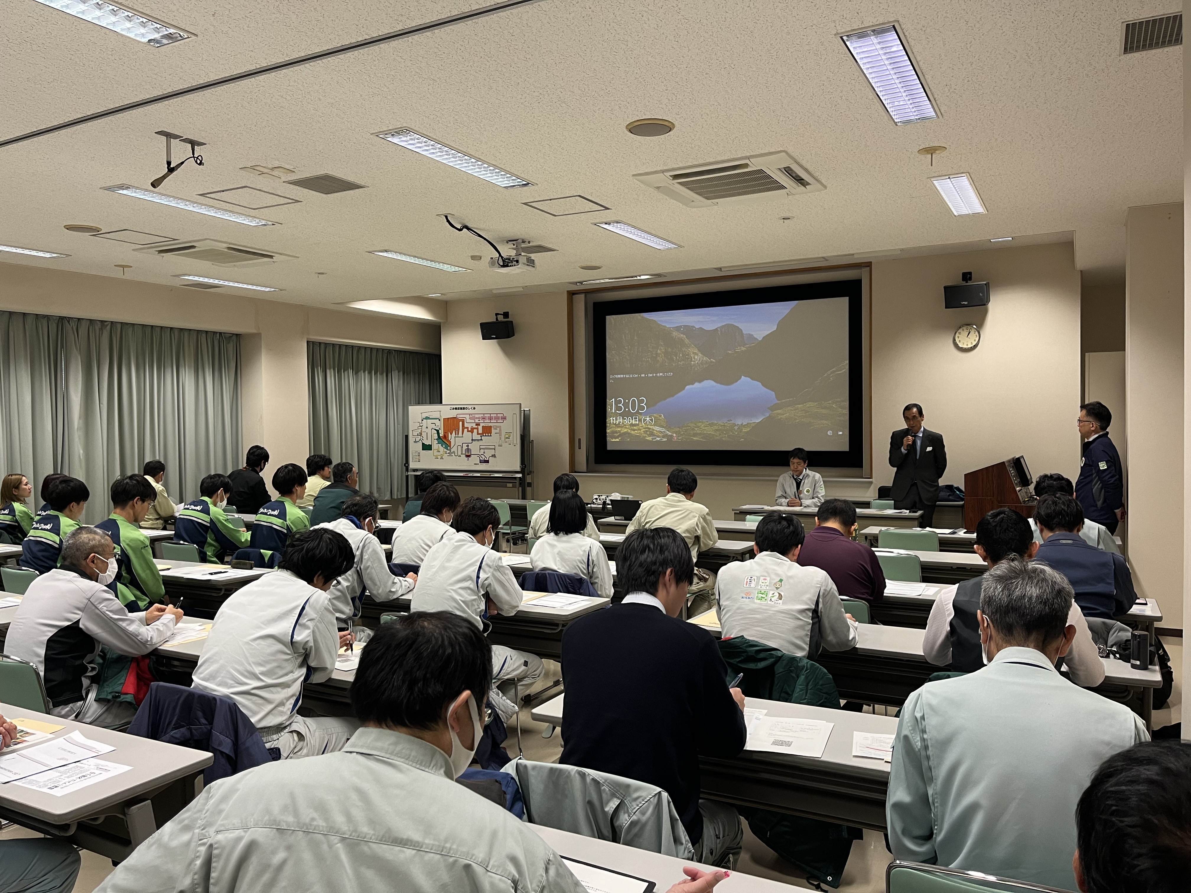 令和5年11月30日(木)午後 ICT活用工事について、発注者及び請負者の技術力向上を図るため、愛知県と当研究会合同で現場講習会を開催し、愛知県職員13名、当研究会会員35名が参加しました。