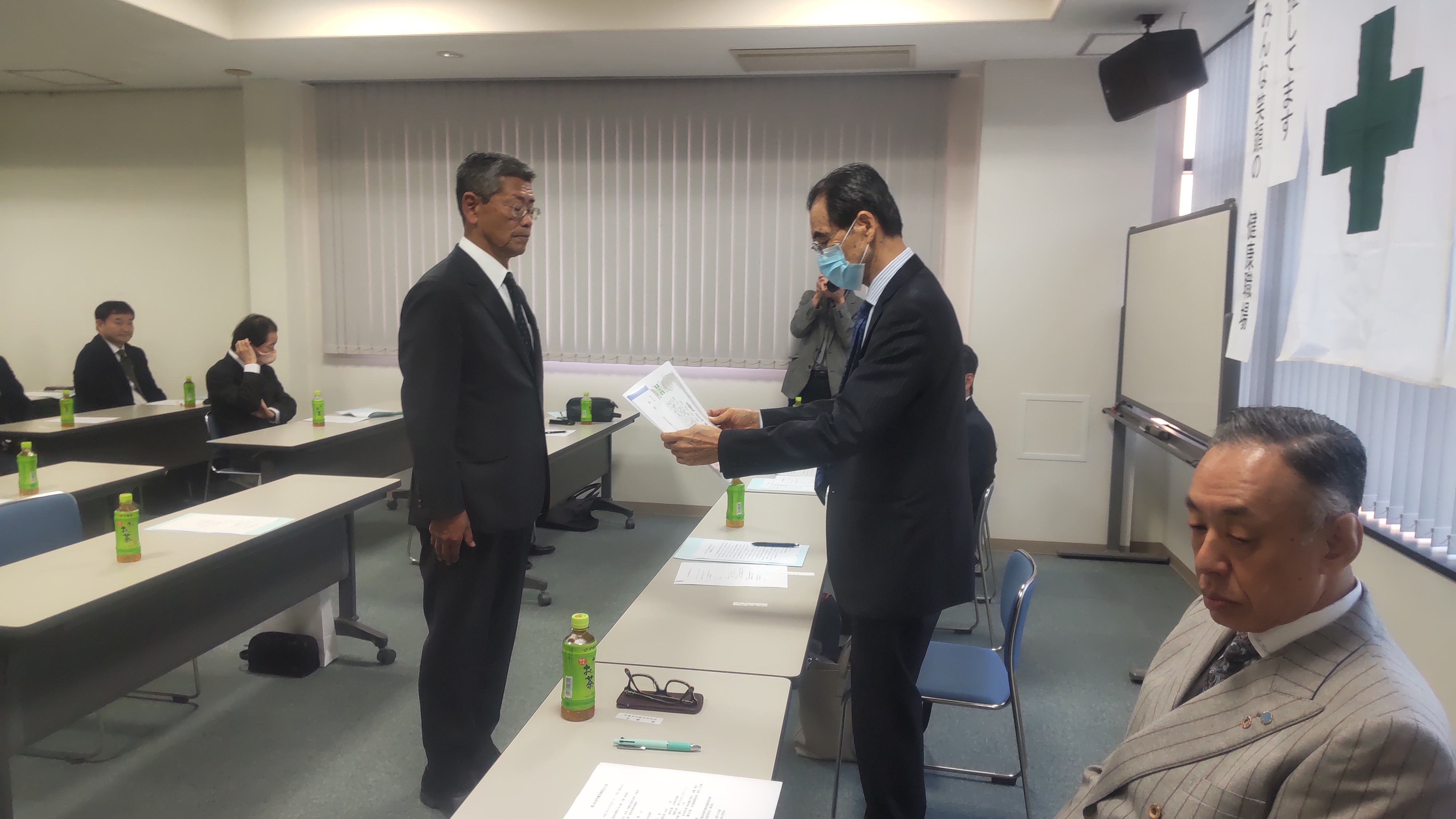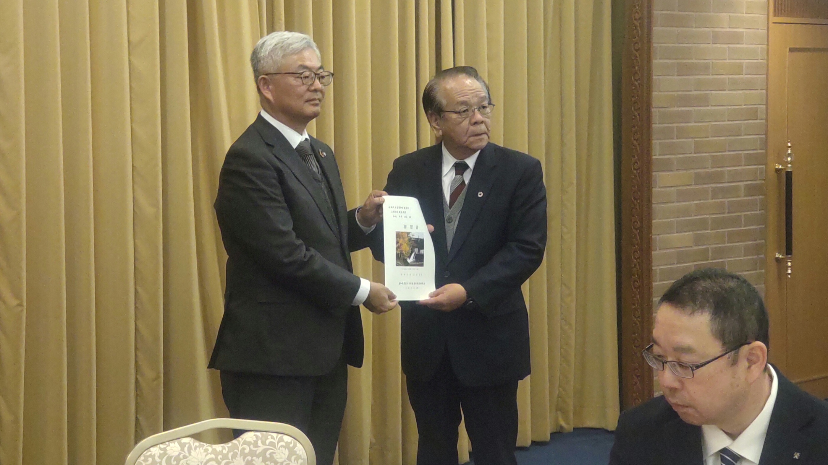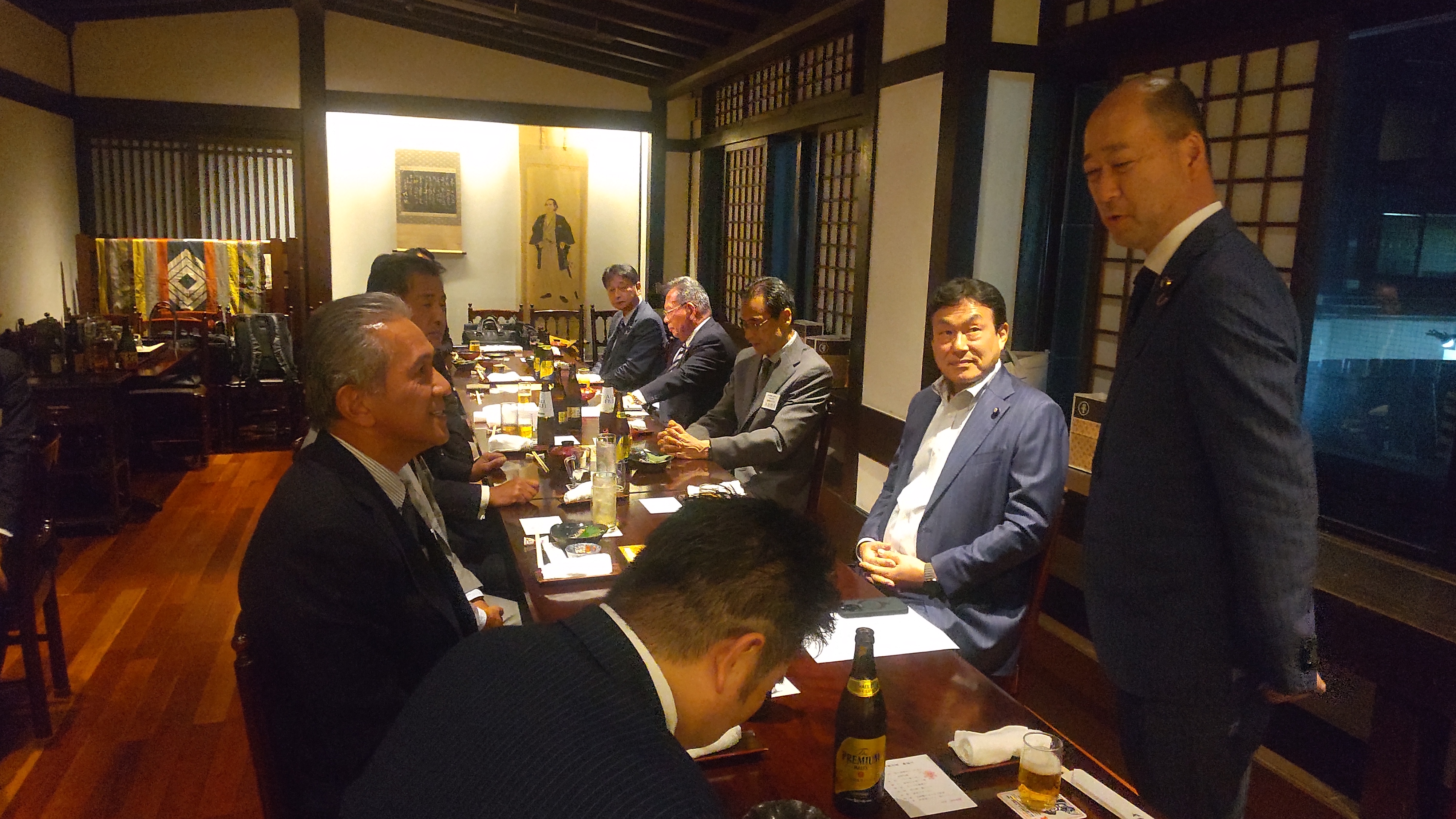 〇10月29日(火) 木全会長はじめ各支部の正副支部長さんたちと、愛知県選出の藤川政人・酒井庸之両参議院議員と土地改良代表の進藤金日子・宮崎雅夫両参議院議員との意見交換会を東京で行いました。席上、来年の参議院議員通常選挙で立候補予定の酒井庸之さんへの推薦状を会長から手渡ししました。参加された皆さん、お疲れさまでした。