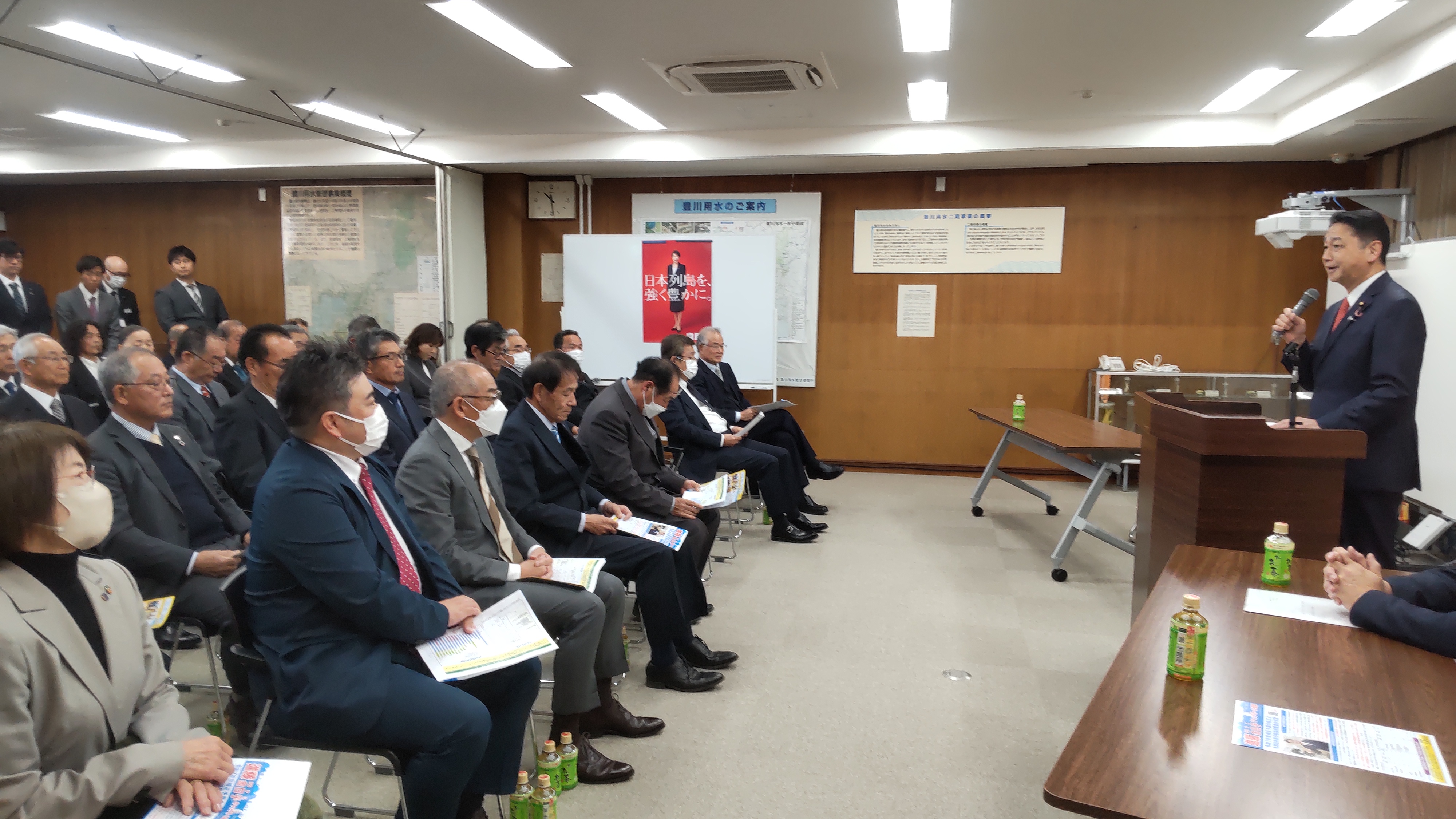 〇11月26日(水) 当研究会役員と愛知県農林基盤局下平局長はじめ幹部の皆様との意見交換の場である土地改良推進懇談会が愛知県議事堂で開催され、活発かつ有意義なな意見交換がなされました。県のご担当の皆様、ありがとうございました。